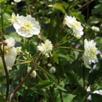 Wit bloeiende Boterbloem. Diep ingesneden donkergroen blad en gevulde witte bloemetjes aan vertakkende dunne stelen. Voor zwaardere, natte grondsoorten die nooit uitdrogen. Prachtig!