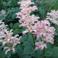 Stevig kastanje-achtig blad dat bronsgroen uitloopt maar later groen verkleurt, en lichtrose bloemen in losse pluimen. Voor een plek met goede, vochthoudende grond. Goede groeier.