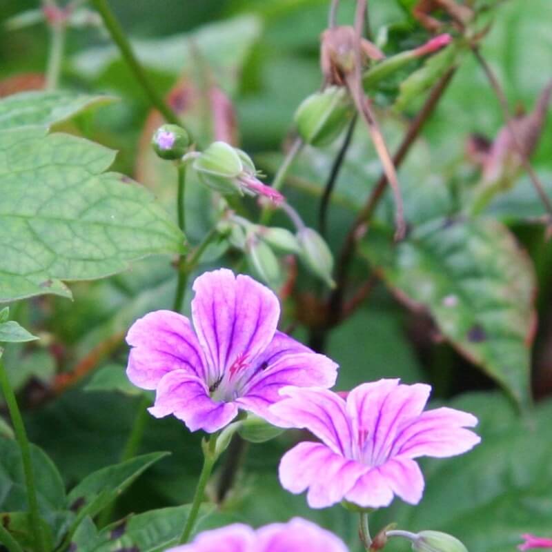Goede bodembedekker voor de (droge) schaduw die langer en rijker bloeit dan de soort (G. nodosum). De bloemen zijn iets feller paars gekleurd met een witte rand en donkere aders.