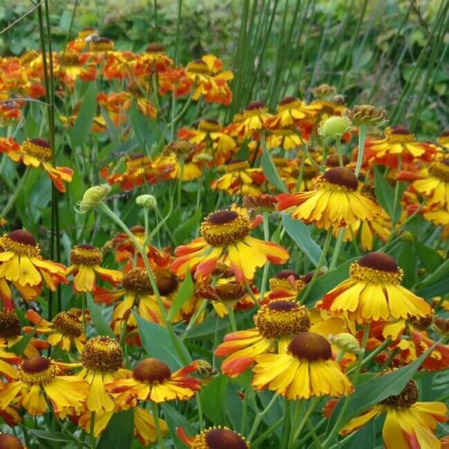 De beste Helenium, stevig, lang bloeiend en gezond. Gele bloemen met een oranje onderkant.
